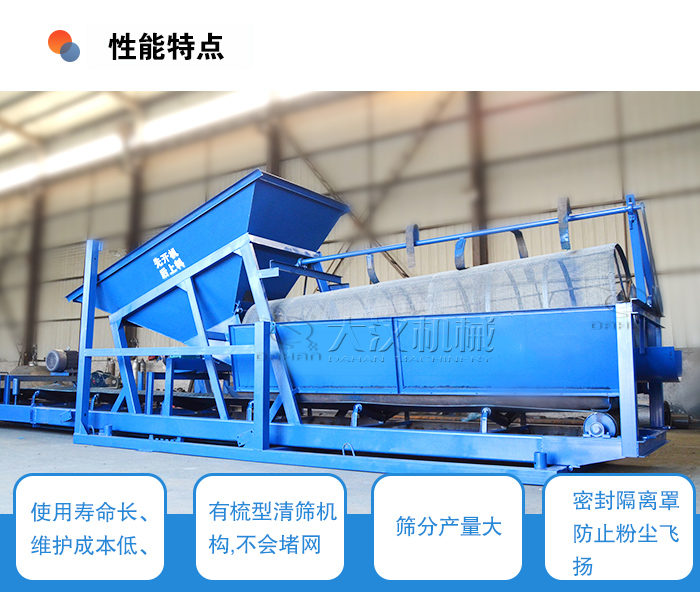 1、采用了滾動(dòng)輸送的原理,摩擦系數(shù)小、使用壽命長、維護(hù)成本低、且篩孔不易堵塞;